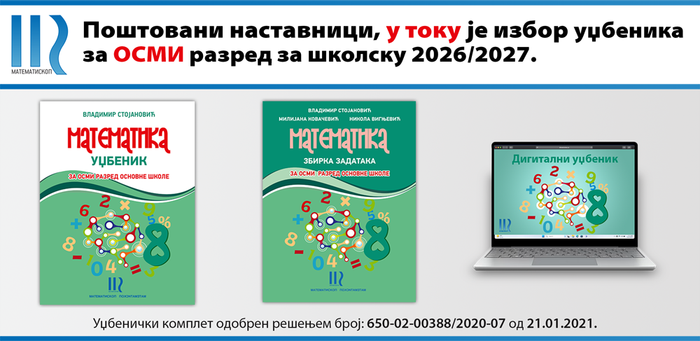 МАТЕМАТИСKОП уџбеници из математике су савремени, модерни и у пракси доказани кроз резултате на малој матури.